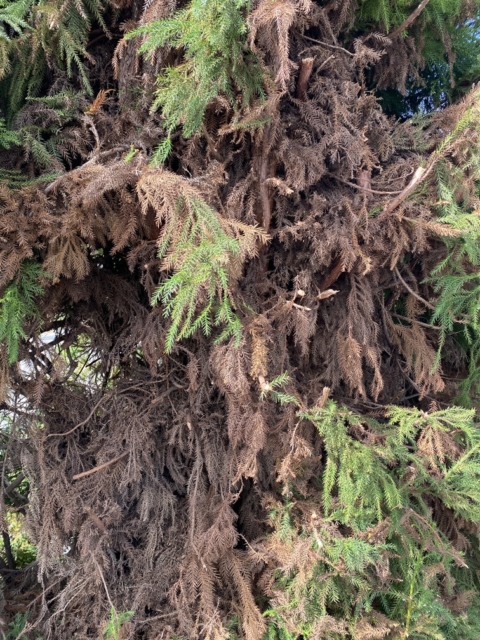 風通しも悪く陽も当たらない為、かなり枯れていました。
